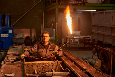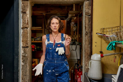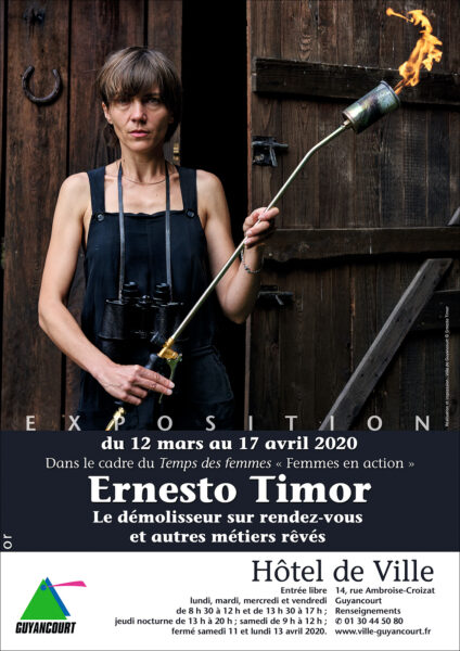 Ces travailleurs fictifs posent sous leur vrai nom, complété du métier qu’ils se sont inventé. À l’écoute de leurs aspirations profondes, ils incarnent pour l’objectif une vocation rêvée ou se paient une allusion grinçante au monde du travail réel. La scène est sobre et plausible : rien de plus qu’un geste, un outil intrigant, une façon d’être, lumières et décors naturels !