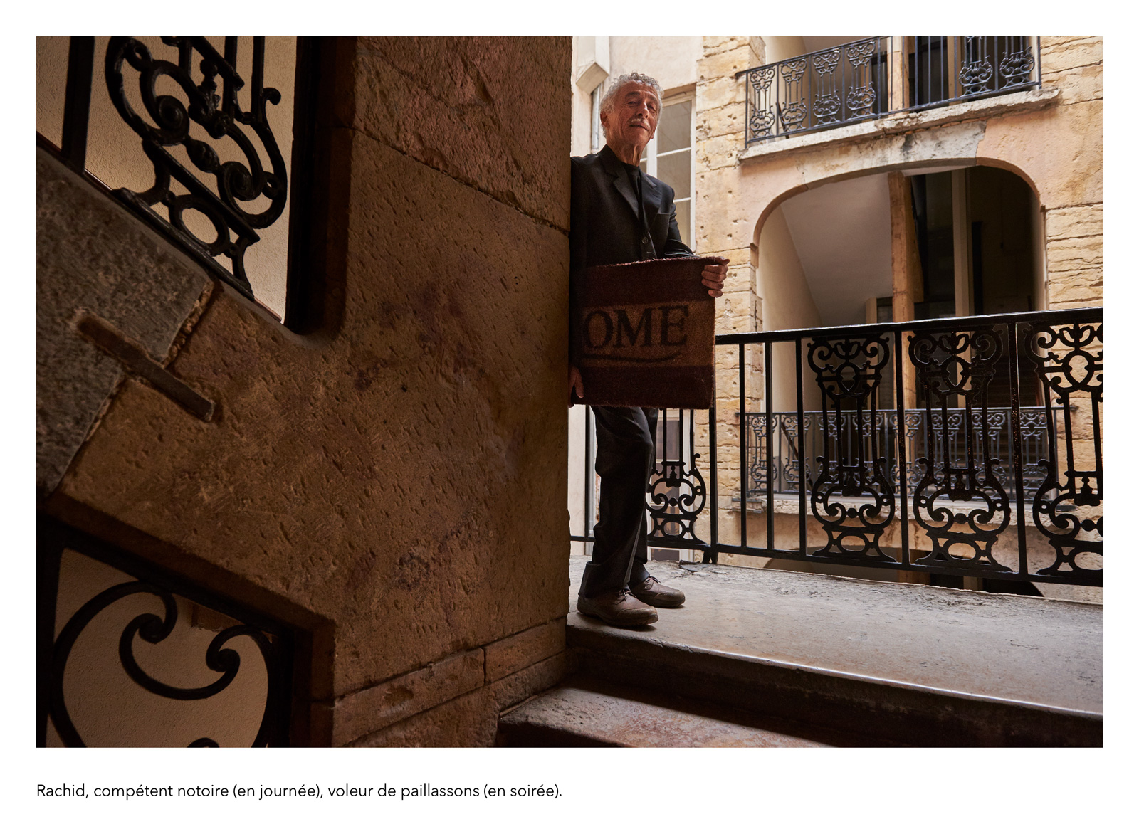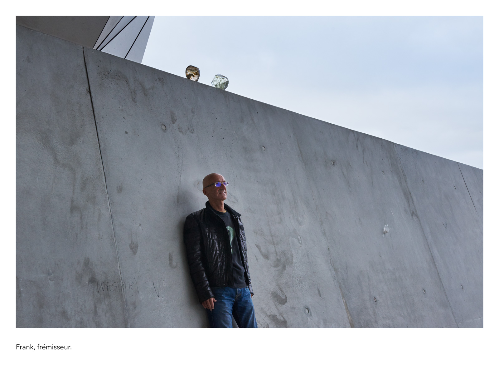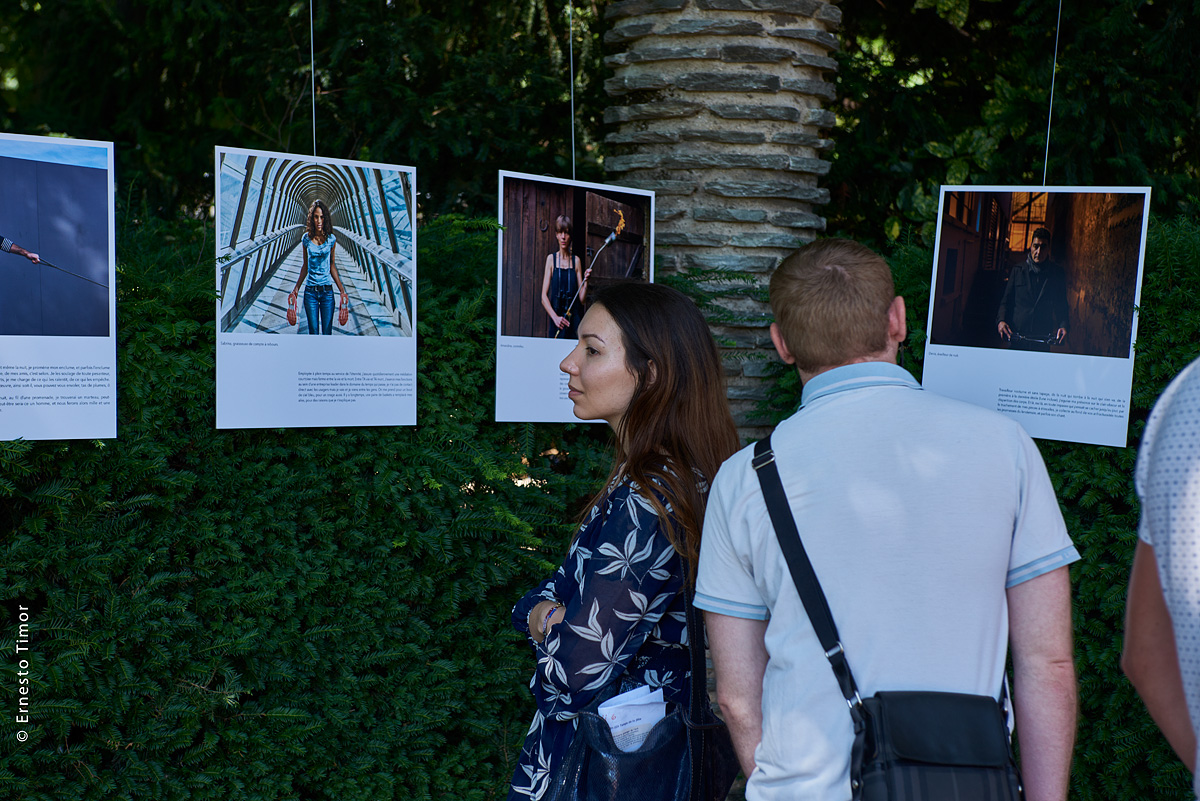 Les textes accompagnant ces portraits sont signés François Chaffin, résonant avec sa création de 51 mots pour dire la sueur, farce poétique et politique autour du travail, spectacle créé début 2019. D’abord dérivées du texte du spectacle, ces présentations fictives se sont nourries par la suite de ce que lui inspiraient les diverses personnalités photographiées, une sorte de gueule de l’emploi à l’envers, en somme…