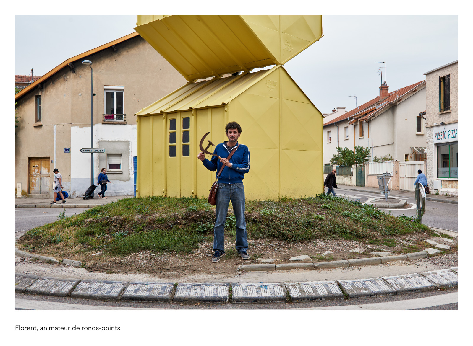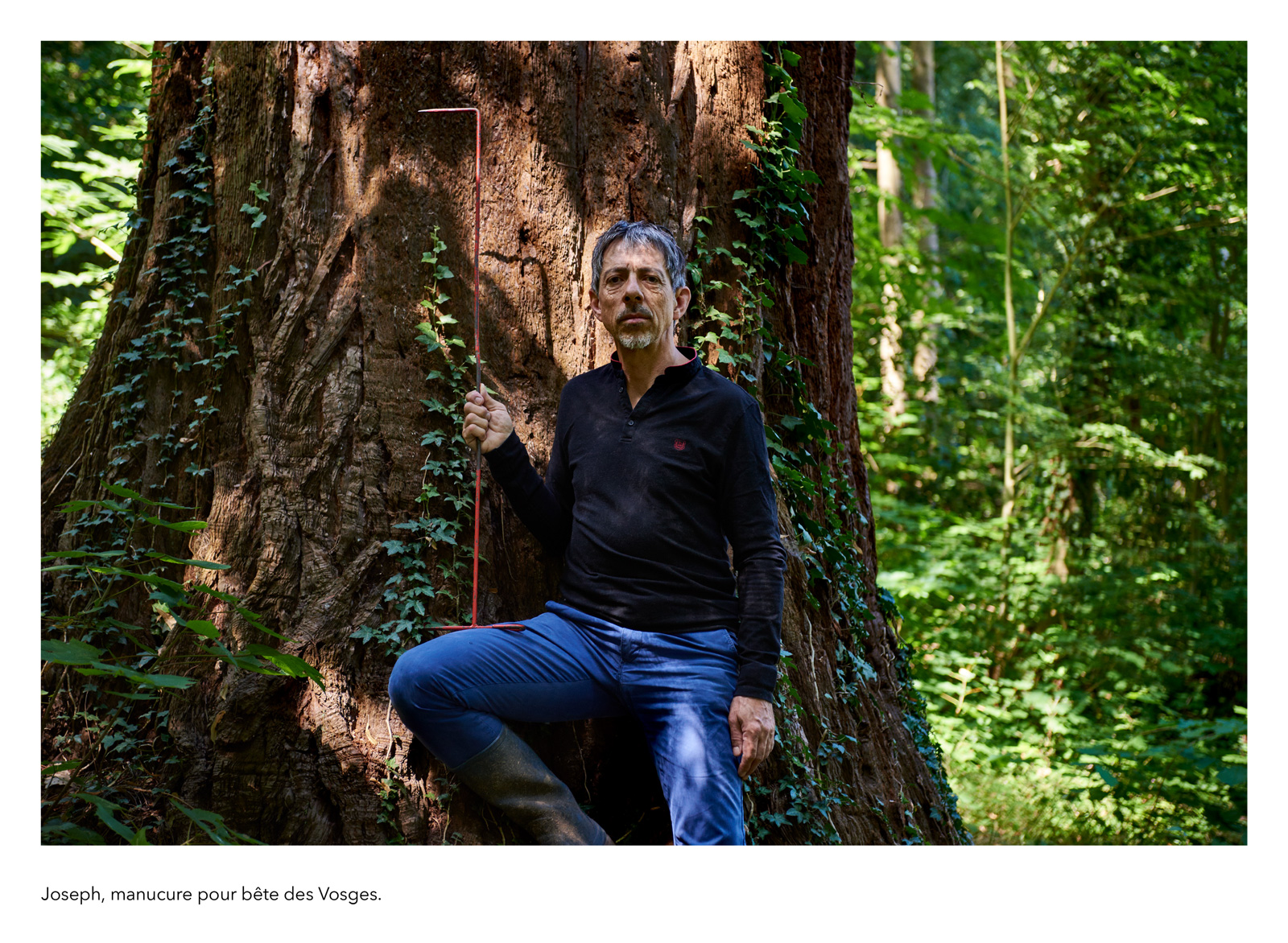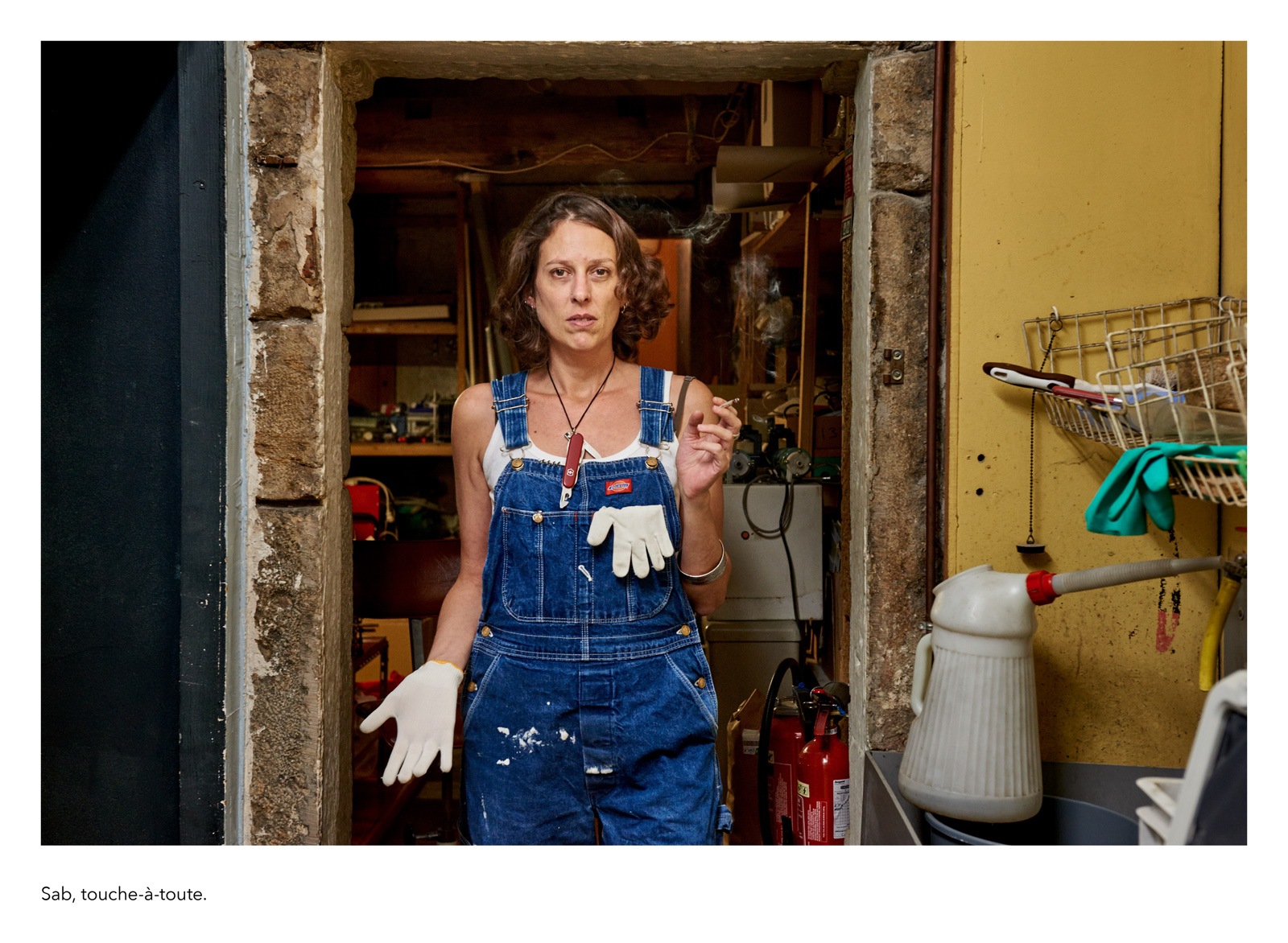 Dans la tradition des clichés de travailleurs posant avec la solennité de leur fonction, je réalise une galerie de portraits d’anonymes qui figurent des métiers imaginaires. Il se présentent à nous avec leur prénom véritable et la profession qu’ils se sont choisie, incarnation éphémère d’une vocation impossible ou allusion grinçante au monde du labeur réel. La scène est sobre et plausible : rien de plus qu’un geste, un outil improbable, une façon d’être, un milieu naturel…