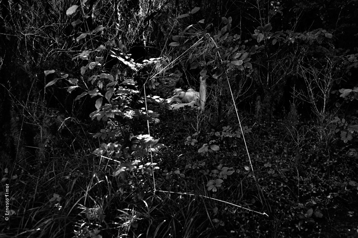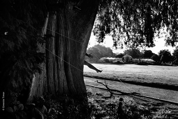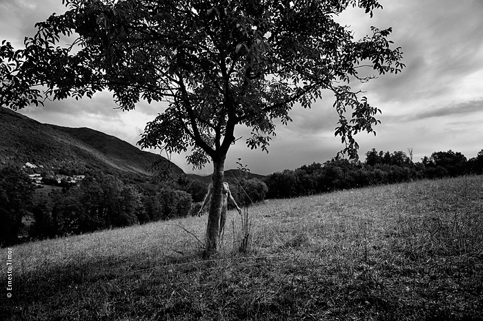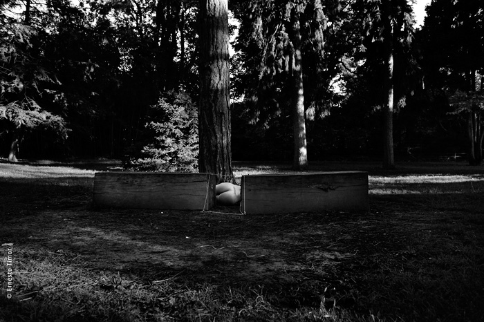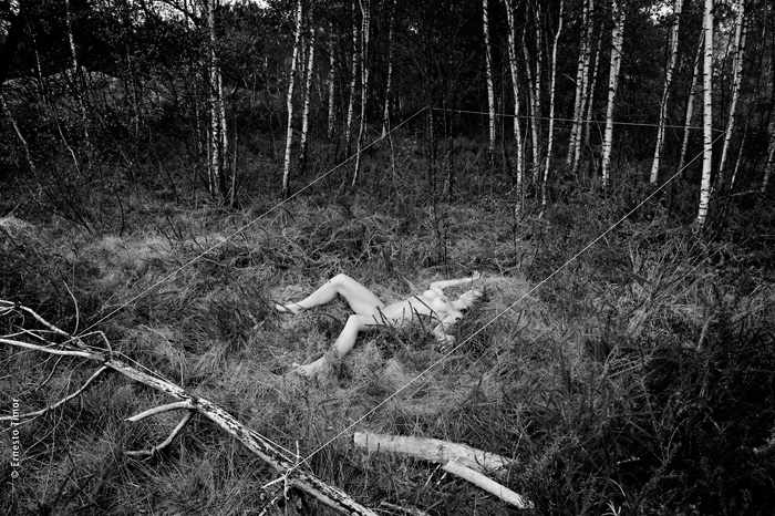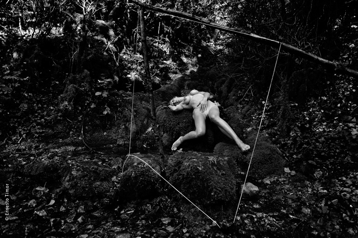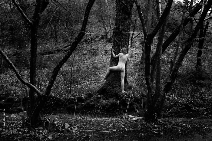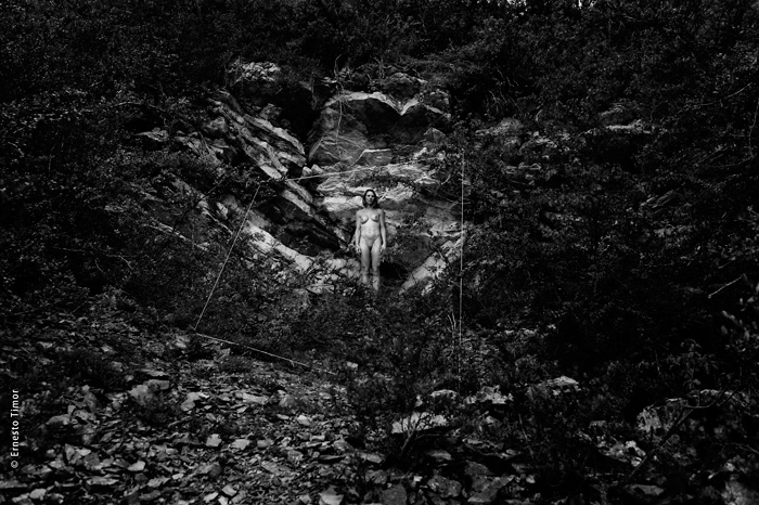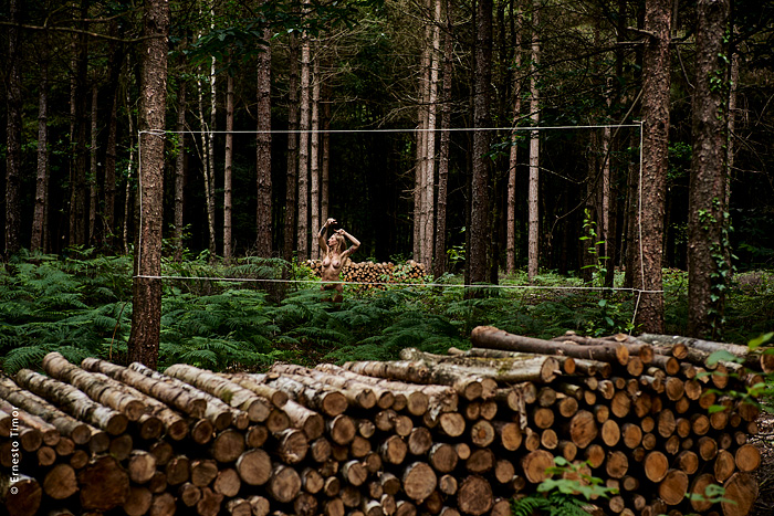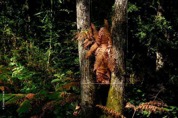 La balade est irrégulière, elle s’interrompt chaque fois que le paysage dicte une station. Une configuration indéfinissable, un arrangement du décor, une coïncidence de lumière… bel endroit pour une apparition ! Mes champs visuels est un projet que j’ai d’abord mené au cours de deux petites immersions en paysages naturels. Le cycle 1 a été photographié en forêt de Brocéliande au printemps 2014, le cycle 2 à l’été 2014 dans le Bugey, avec compléments à Lyon. Un troisième et dernier cycle est en cours, il se peut qu’il boucle la boucle en forêt de Brocéliande. Tous les cycles d’apparitions et disparitions se sont faits avec la complicité d’Angèle Bangor. Indiscrétions sur le cycle 3 (en cours, parution à venir). Produits dérivés. Ce projet a engendré une filiation qui ne tient pas en place, intitulée Pour que tu ne perdes pas le fil. On y retrouve la pelote de cordeau, qui cadre un peu tout ça. Cette contrainte créative mise à part, l’approche est différente, voire complémentaire : l’humain est au premier plan, c’est lui qui décide comment tout cela va se dérouler, en l’impliquant à des degrés divers. Ce basculement du côté de l’incertain et du déroulement intime a fait aussi changer le mode de restitution : c’est le chemin qui importe, ses tentatives et ses retours sur soi, il faut pouvoir glisser le long de cette profusion d’images intermédiaires, et la restitution passe donc des petits films photographiques, autant que de rencontres, de performances… A découvrir plus en détail ici…