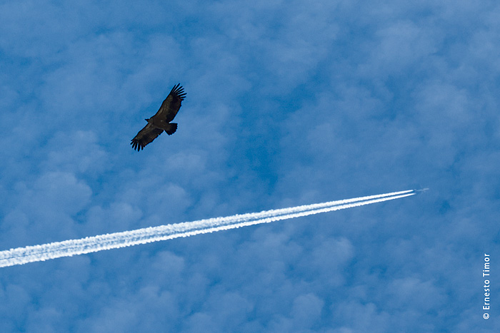 C’est donc un vautour fauve (je savais) mais c’est lui qu’on appelait avant le griffon (je savais pas, je croyais que c’était un monstre de légende). Pour les chemtrails à côté, je sais pas… ;-)
