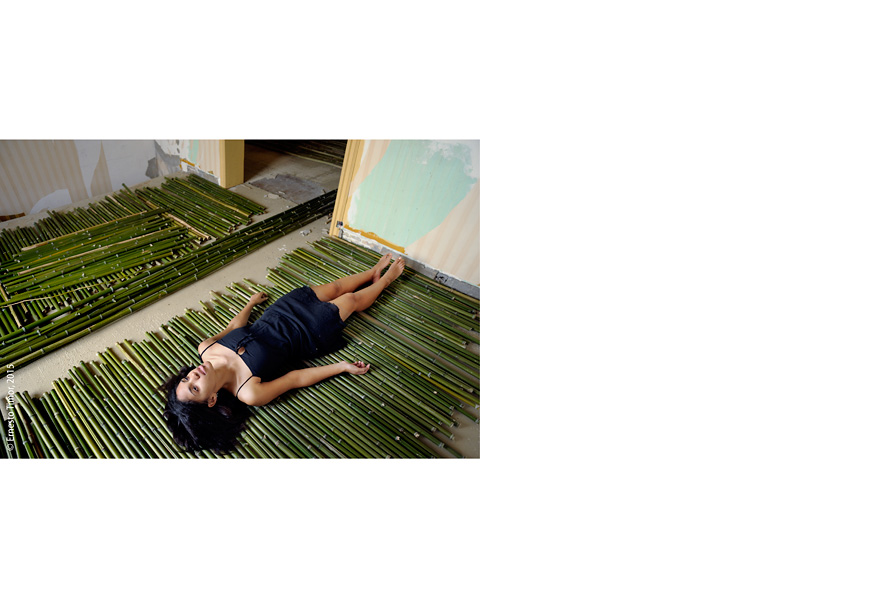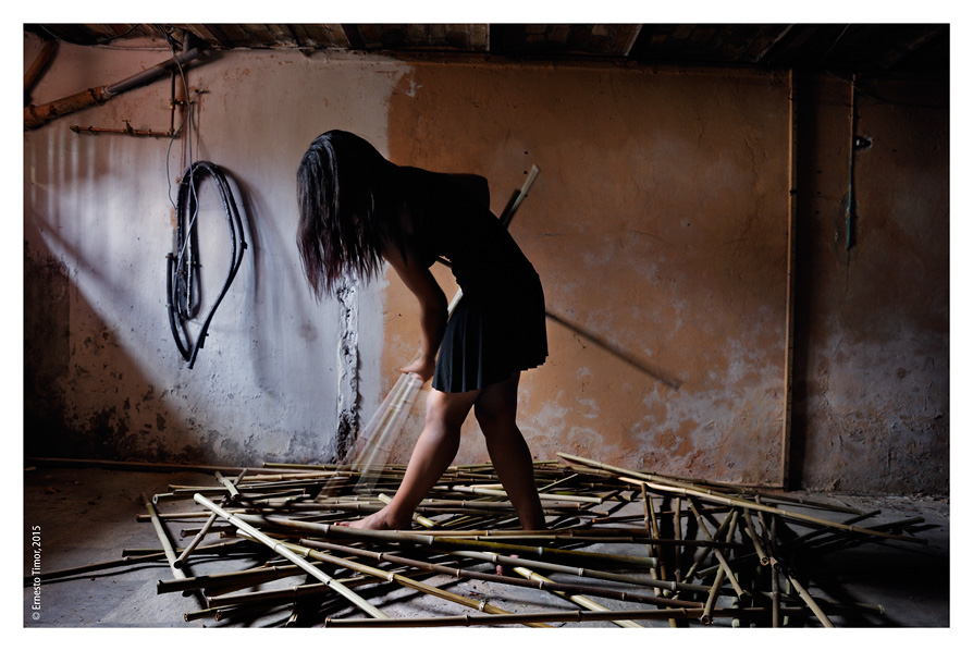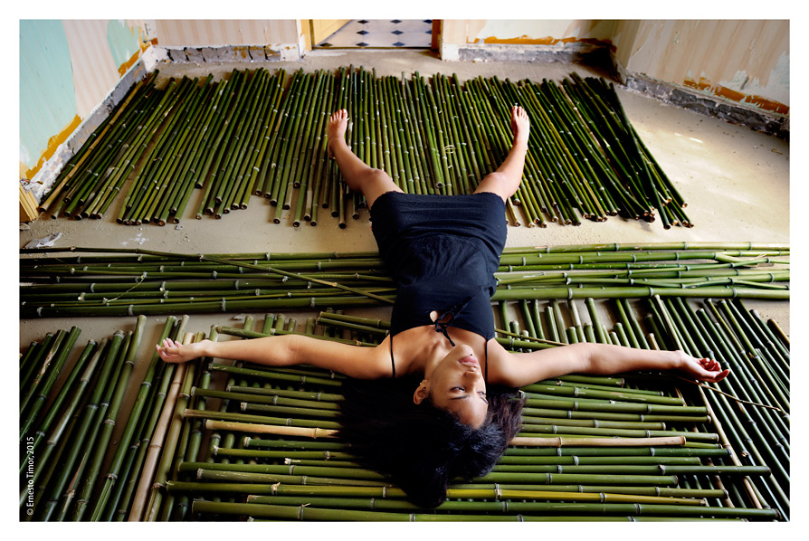 La fiancée du Mikado [Mikado’s Bride] combine en trois chapitres inégaux plusieurs visites d’une jeune femme à la maison aux bambous. Aussi surprenant que cela paraisse, il n’y a là aucune intervention de ma part sur le décor, ni intention artistique de qui que ce soit : rien que des bambous coupés, mis à sécher, stockés là où y avait de la place. Ça n’empêche pas de rêver un peu…