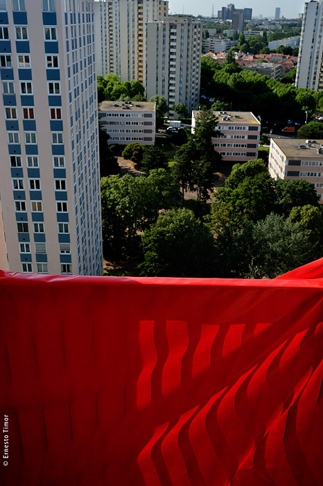 Photo en marge de mon projet photographique de saison pour le théâtre de Chevilly-Larue, Oh, l’écarlate ! Il s’agit d’une refusée (par moi-même, pour au moins 15 étages de bonnes raisons) mais là, aujourd’hui, allez savoir pourquoi je trouve qu’elle claque, vertigineuse comme une cause depuis longtemps perdue…